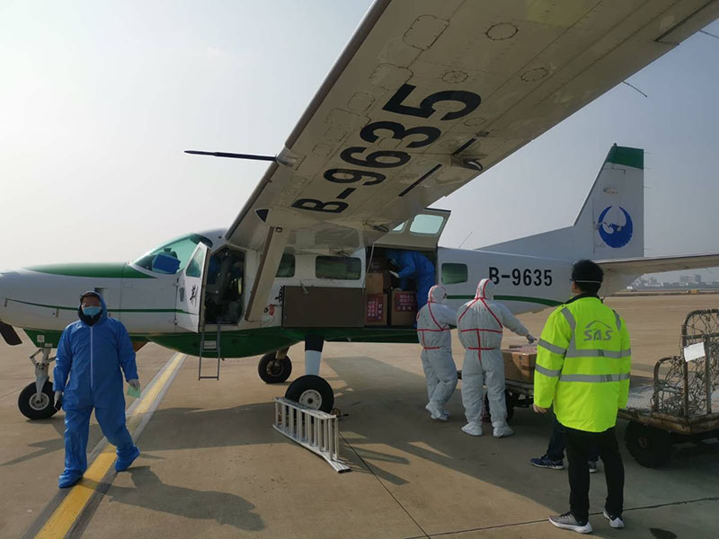 荊門通航9635機(jī)組執(zhí)行上海至襄陽(yáng)緊急防疫物資運(yùn)輸任務(wù)
