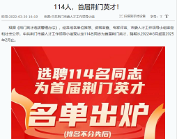 近日,荊門市首屆荊門英才名單公布,我公司盧慶新同志被選聘為“首屆荊門英才”(技能工匠類),聘期從2022年3月起至2025年2月止。據悉,全市共有114名各領域專家技能人才及各類創(chuàng)新創(chuàng)業(yè)人才入選,涉及···